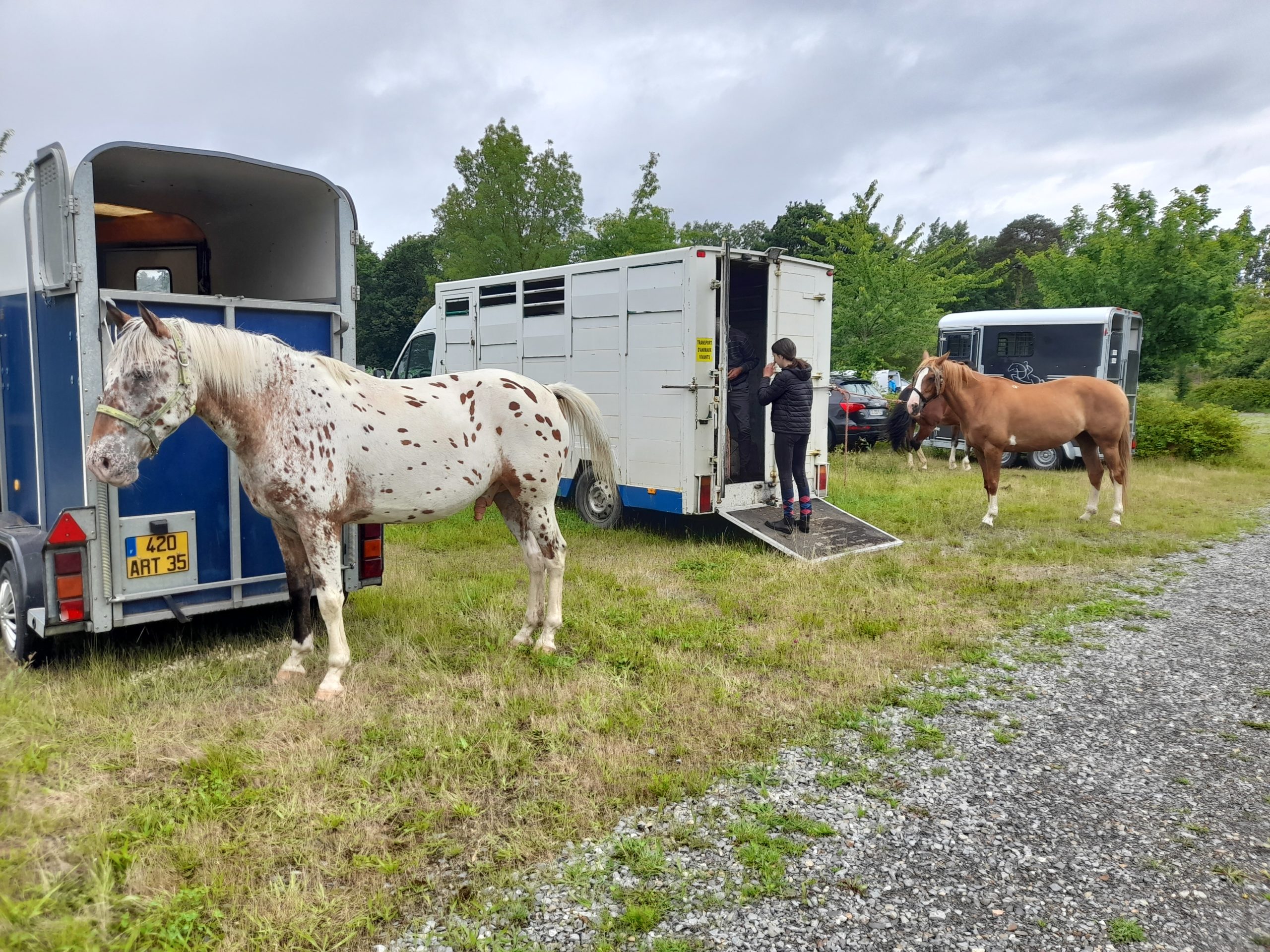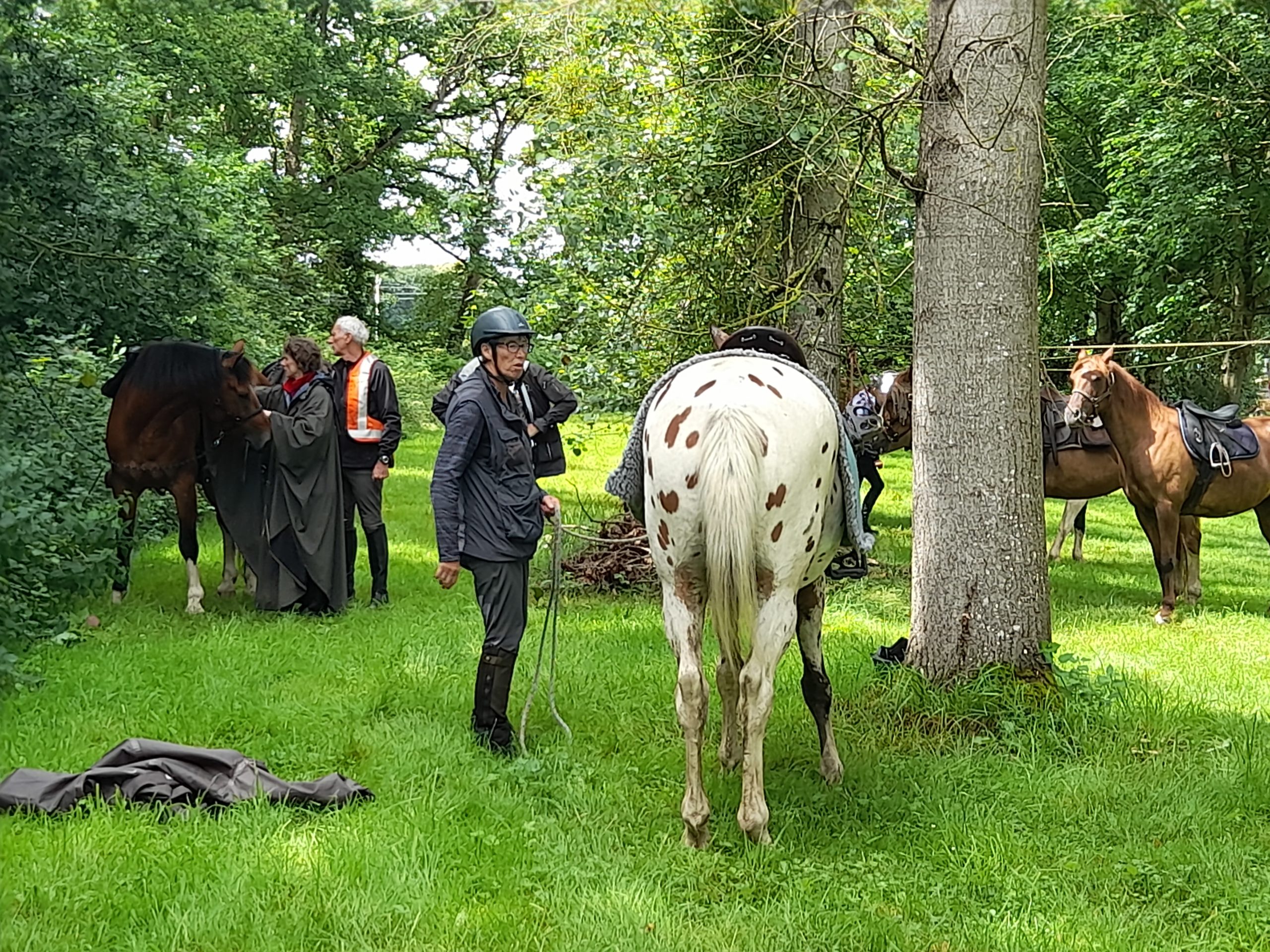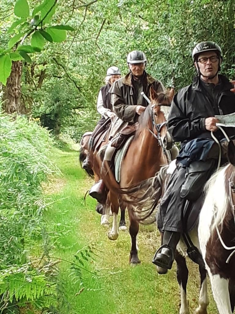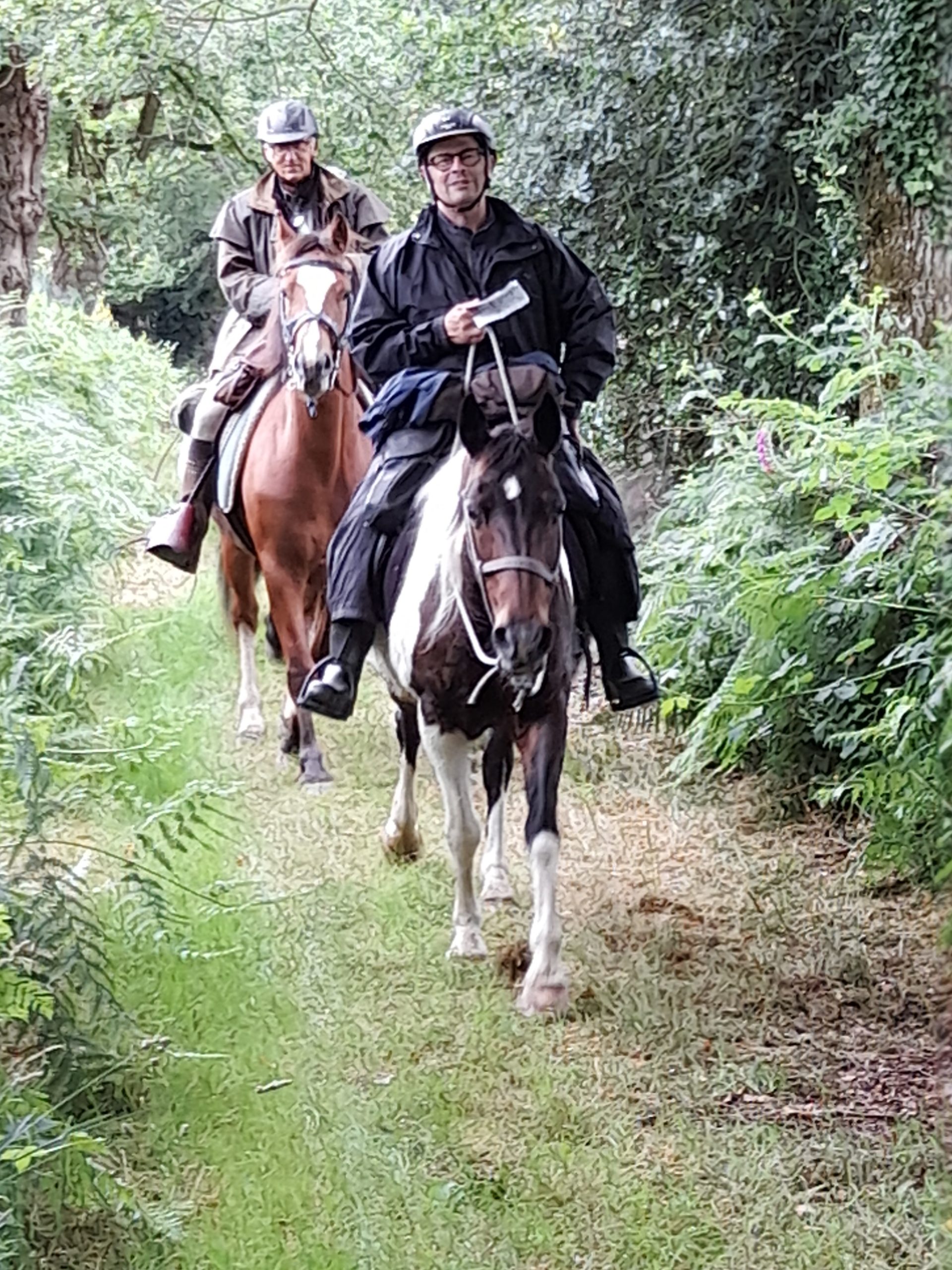Météo peu estivale pour cette 1ère randonnée sur les chemins du Val d’Ille et de la Bretagne Romantique mais cela n’a pas altéré la bonne humeur des cavaliers.