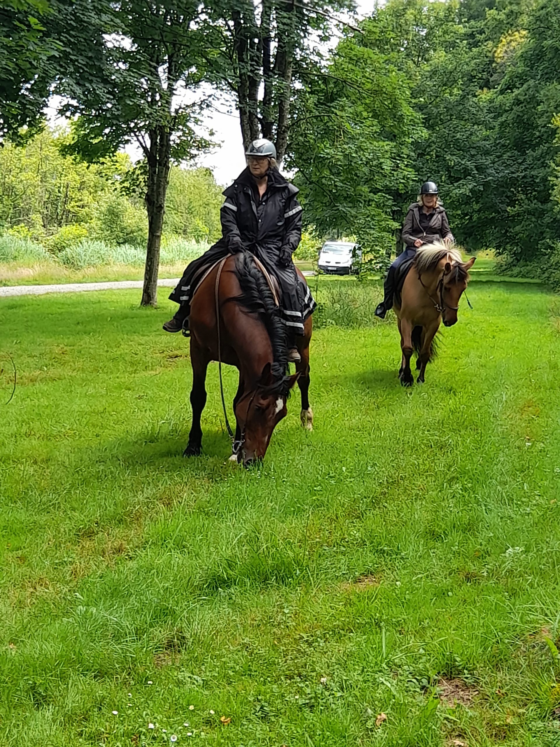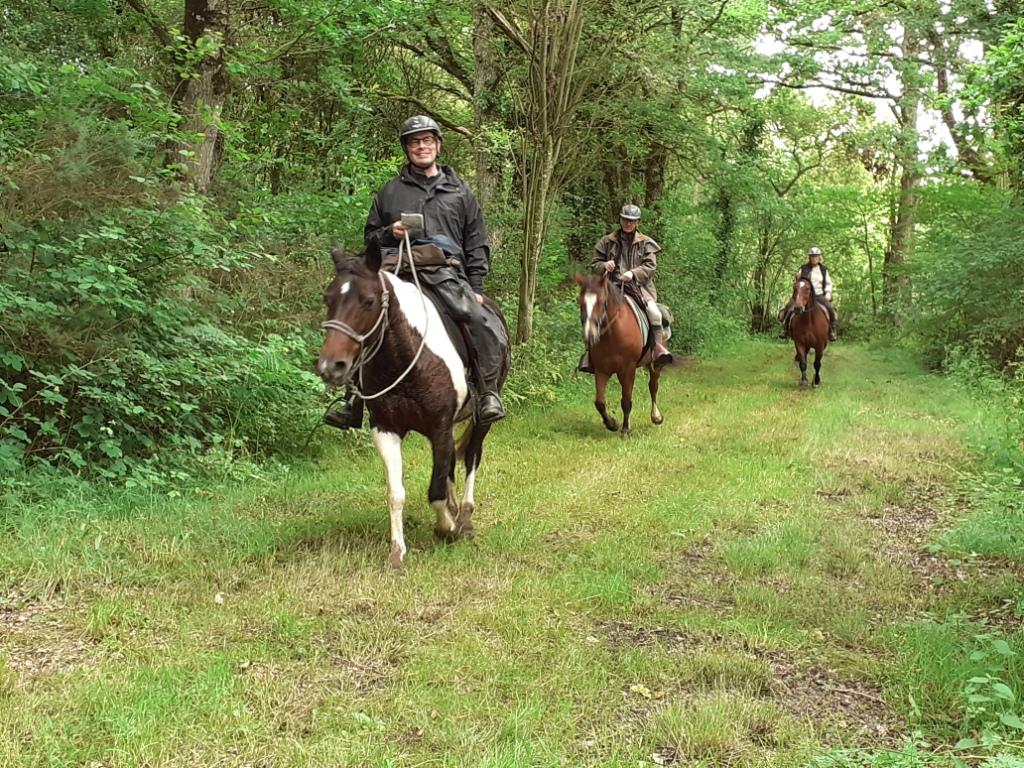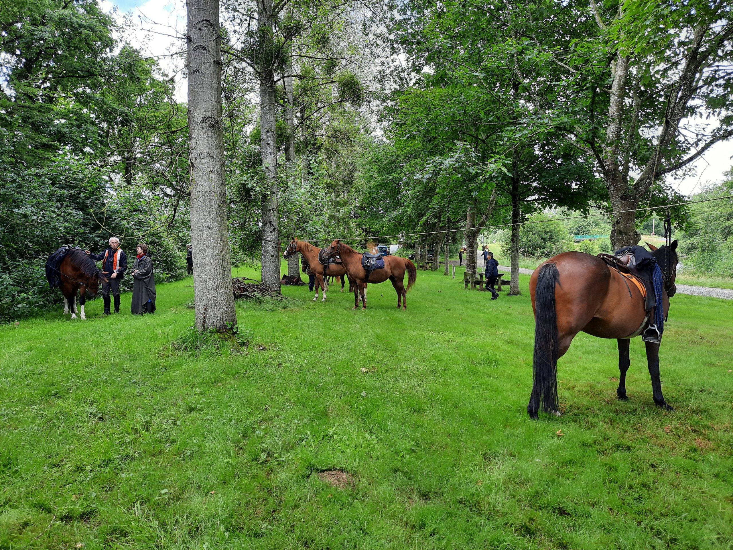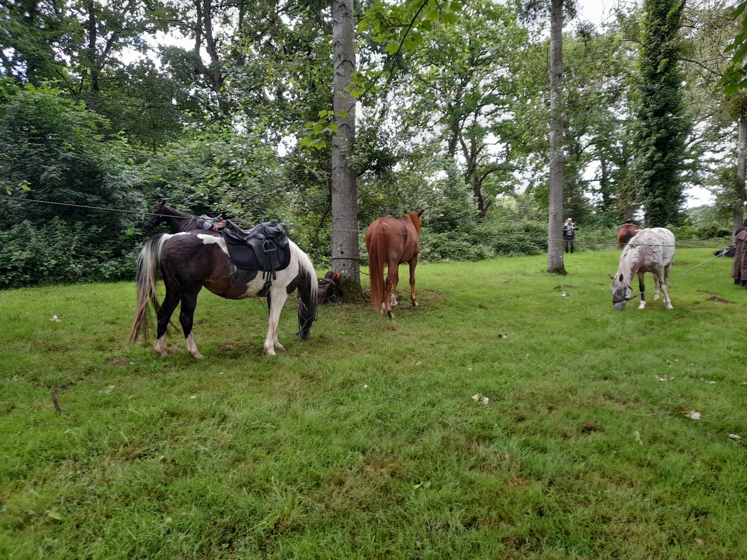 Météo peu estivale pour cette 1ère randonnée sur les chemins du Val d’Ille et de la Bretagne Romantique mais cela n’a pas altéré la bonne humeur des cavaliers.